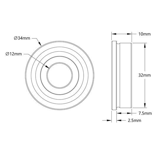 12mm ID Flanged Ball Bearing (32mm OD, 10mm Thickness)
