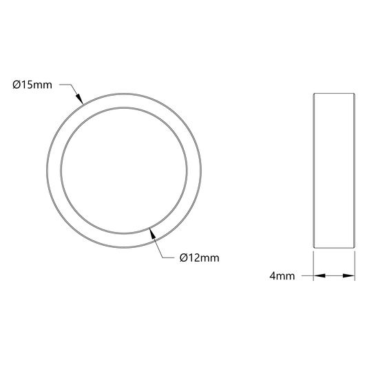 12mm ID Steel Spacer (15mm OD, 4mm Length) - 4 Pack