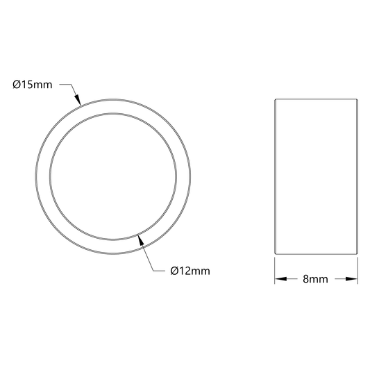 12mm ID Steel Spacer (15mm OD, 8mm Length) - 4 Pack