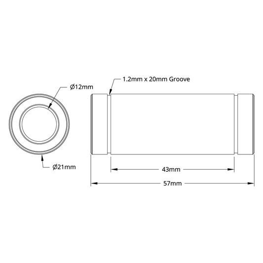 12mm ID Linear Ball Bearing (21mm OD, 57mm Length) - 2 Pack