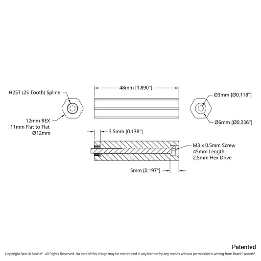 12mm REX™ Servo Shaft (25 Tooth Spline, 48mm Length)
