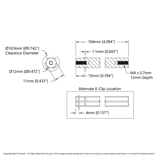 12mm REX™ Shaft with E-Clip (Stainless Steel, 104mm Length)