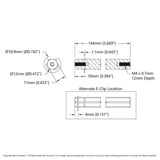 12mm REX™ Shaft with E-Clip (Stainless Steel, 144mm Length)