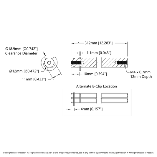 12mm REX™ Shaft with E-Clip (Stainless Steel, 312mm Length)