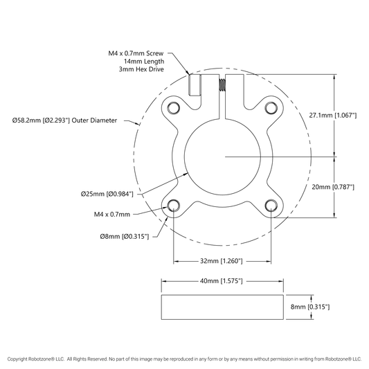 1305 Series Thru-Hole Clamping Hub (25mm Bore)