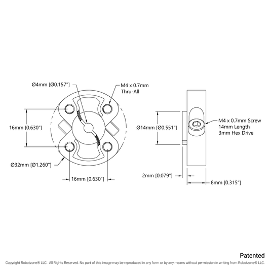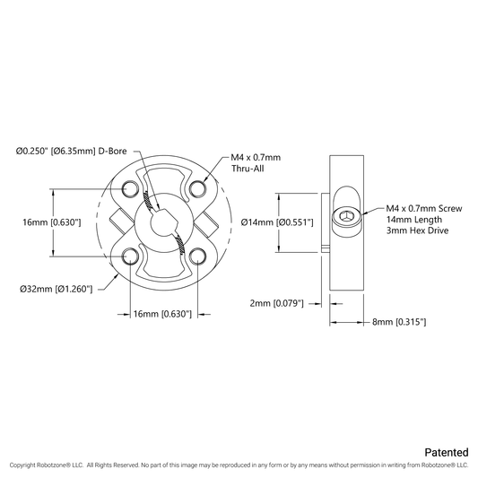 1308 Series Lightweight Set-Screw Hub (3mm Bore)