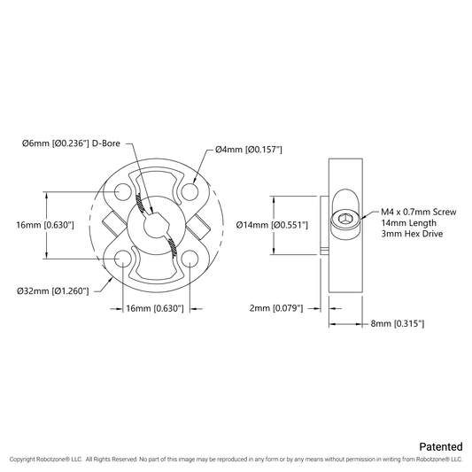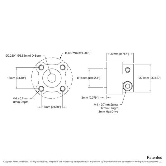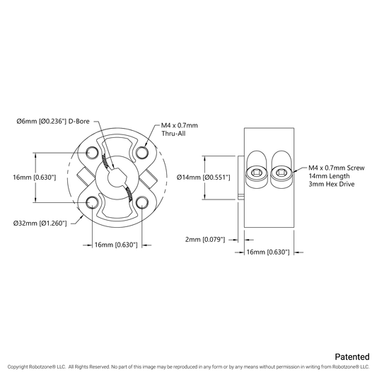 1311 Series Thru-Hole Sonic Hub (6mm D-Bore)