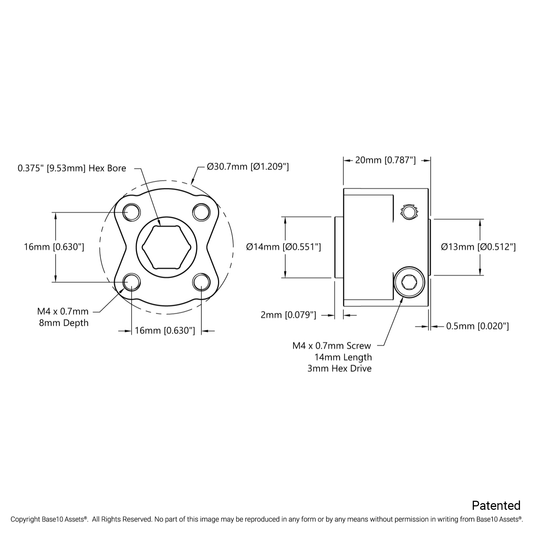 1310 Series Hyper Hub (3/8" Hex Bore)