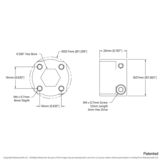 1310 Series Hyper Hub (1/2" Hex Bore)