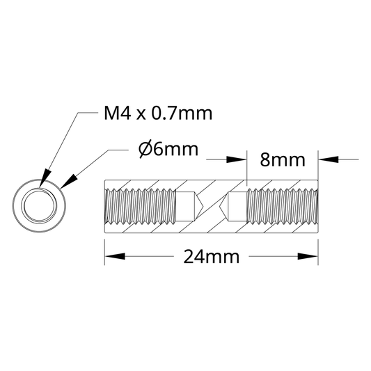 1501 Series M4 x 0.7mm Standoff (6mm OD, 24mm Length) - 4 Pack