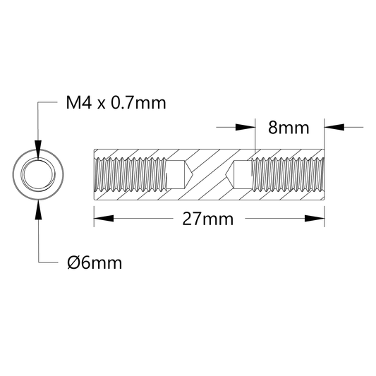 1501 Series M4 x 0.7mm Standoff (6mm OD, 27mm Length) - 4 Pack