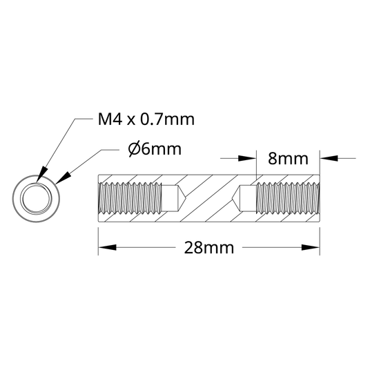 1501 Series M4 x 0.7mm Standoff (6mm OD, 28mm Length) - 4 Pack
