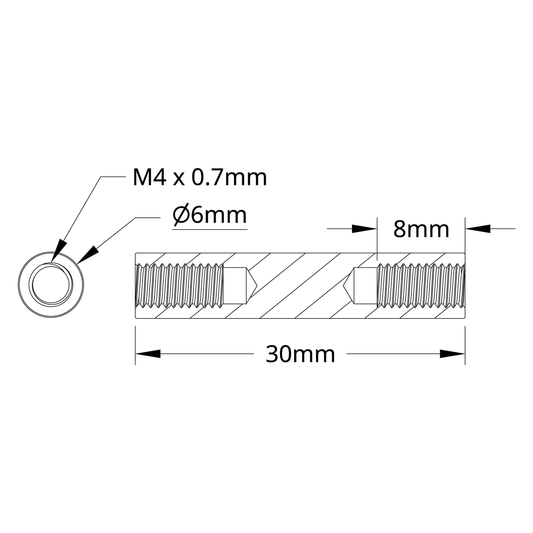 1501 Series M4 x 0.7mm Standoff (6mm OD, 30mm Length) - 4 Pack