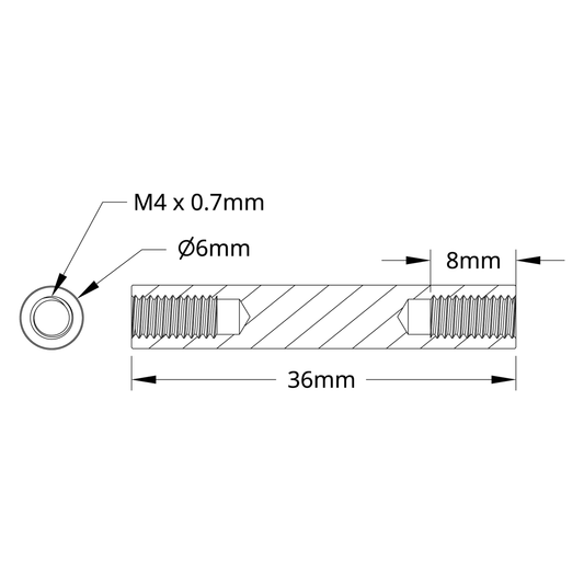 1501 Series M4 x 0.7mm Standoff (6mm OD, 36mm Length) - 4 Pack