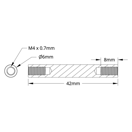 1501 Series M4 x 0.7mm Standoff (6mm OD, 42mm Length) - 4 Pack