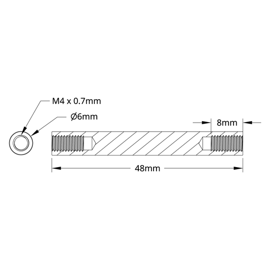1501 Series M4 x 0.7mm Standoff (6mm OD, 48mm Length) - 4 Pack