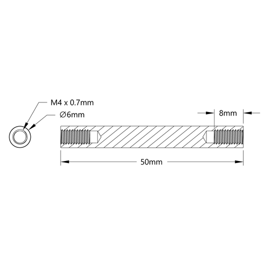 1501 Series M4 x 0.7mm Standoff (6mm OD, 50mm Length) - 4 Pack