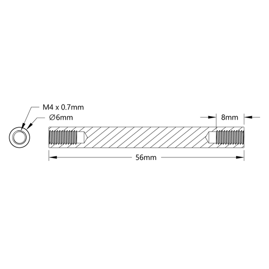 1501 Series M4 x 0.7mm Standoff (6mm OD, 56mm Length) - 4 Pack