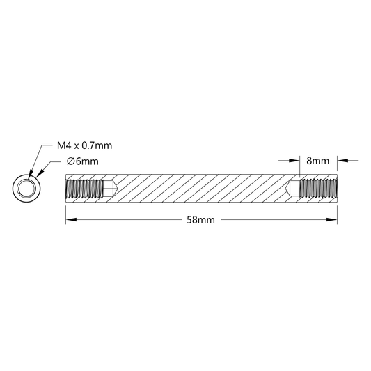1501 Series M4 x 0.7mm Standoff (6mm OD, 58mm Length) - 4 Pack