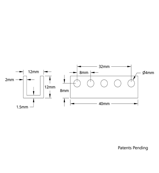 1101 Series U-Beam (5 Hole, 40mm Length)