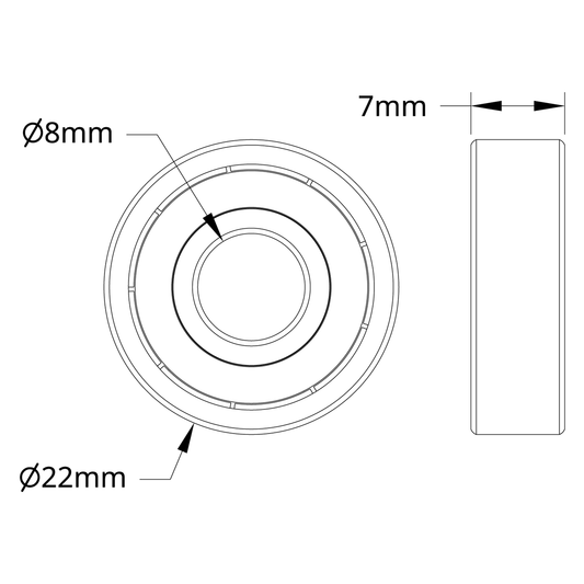 1600 Series Non-Flanged Ball Bearing (8mm ID x 22mm OD, 7mm Thickness) - 2 Pack