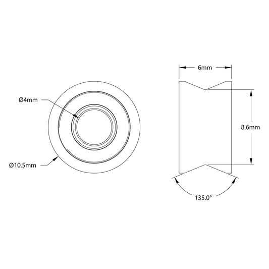 1609 Series V-Groove Bearing (4mm ID x 10.5mm OD, 6mm Thickness) - 2 Pack