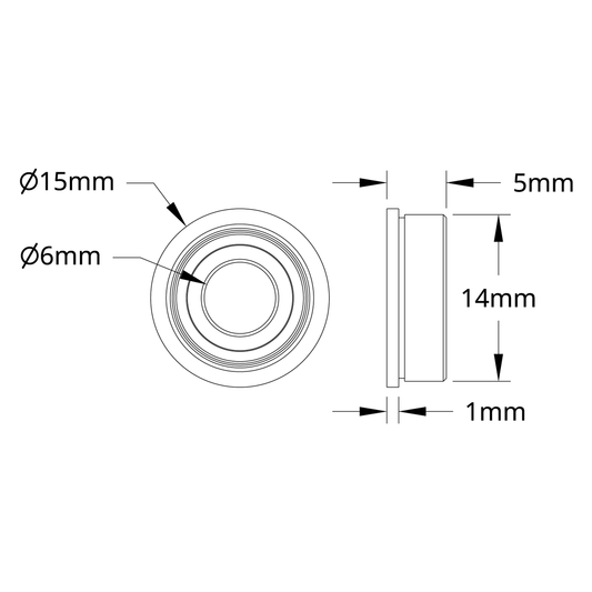 1611 Series Flanged Ball Bearing (6mm ID x 14mm OD, 5mm Thickness) - 2 Pack