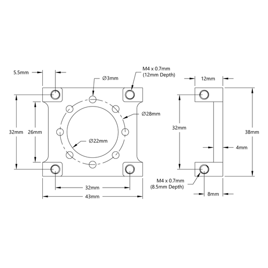 1700 Series Face Tapped Stepper Motor Mount (NEMA 8)