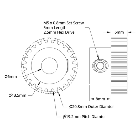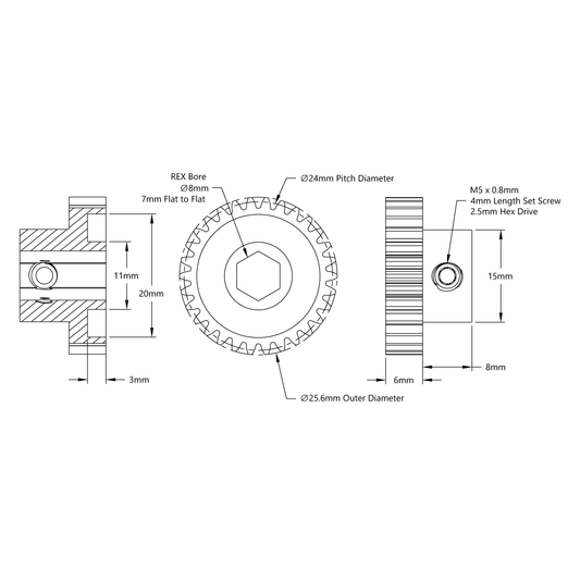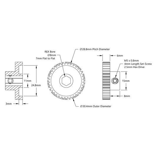 2303 Series Steel, MOD 0.8 Pinion Gear (8mm REX™ Bore, 30 Tooth)