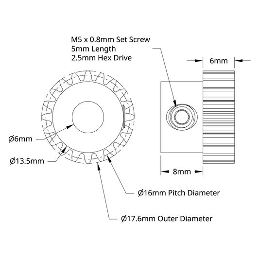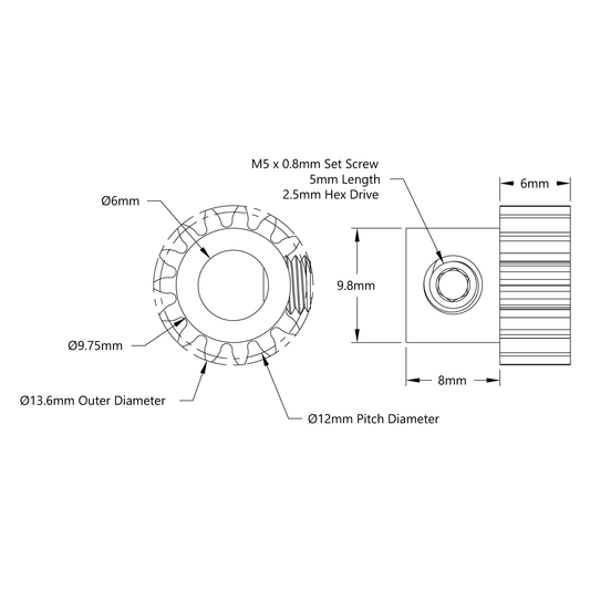 2303 Series Steel, MOD 0.8 Pinion Gear (8mm REX™ Bore, 40 Tooth)
