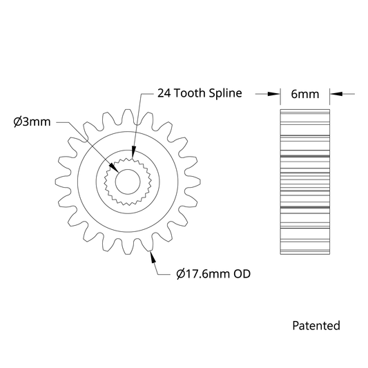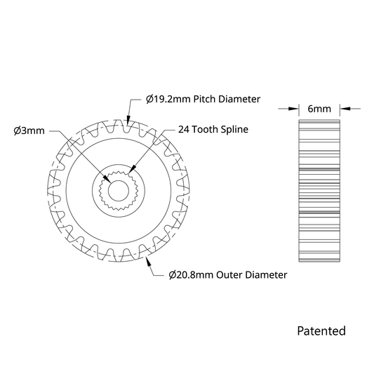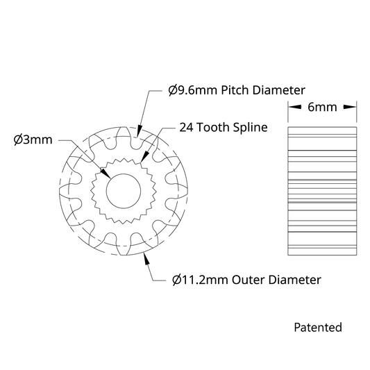 2305 Series Brass, MOD 0.8, Servo Gear (24 Tooth Spline, 24 Tooth)