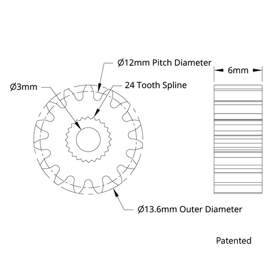 2305 Series Brass, MOD 0.8, Servo Gear (24 Tooth Spline, 12 Tooth)