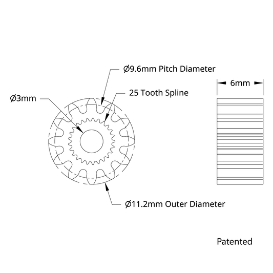 2305 Series Brass, MOD 0.8, Servo Gear (25 Tooth Spline, 12 Tooth)