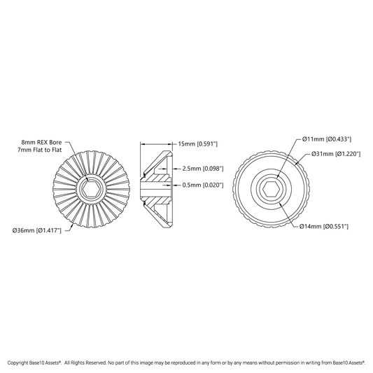2303 Series Steel, MOD 0.8 Pinion Gear (8mm REX™ Bore, 36 Tooth)