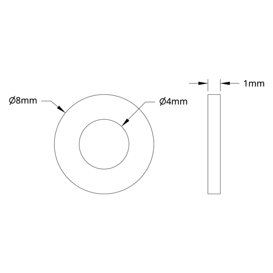2801 Series Zinc Plated Steel Washer (4mm ID x 8mm OD) - 25 Pack