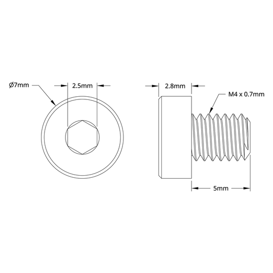 2804 Series Zinc-Plated Steel Low Profile Socket Head Screw (M4 x 0.7mm, 5mm Length) - 25 Pack