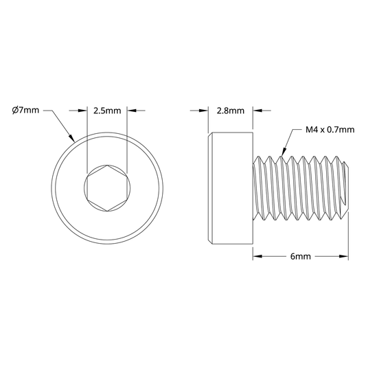 2804 Series Zinc-Plated Steel Low Profile Socket Head Screw (M4 x 0.7mm, 6mm Length) - 25 Pack