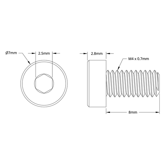 2804 Series Zinc-Plated Steel Low Profile Socket Head Screw (M4 x 0.7mm, 8mm Length) - 25 Pack