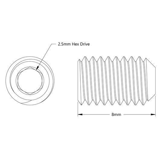 2806 Series Black Oxide Steel Cup-Point Set-Screw (M5 x 0.8mm, 8mm Length) - 25 Pack