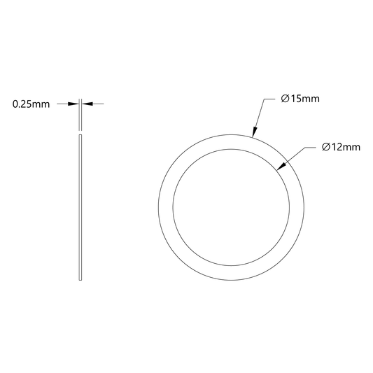 2807 Series Stainless Steel Shim (12mm ID x 15mm OD, 0.25mm Thickness) - 12 Pack