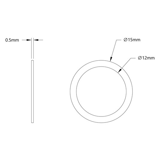 2807 Series Stainless Steel Shim (12mm ID x 15mm OD, 0.50mm Thickness) - 12 Pack