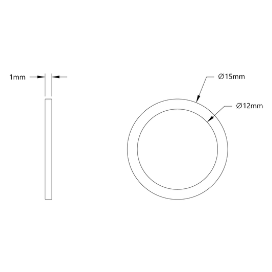 2807 Series Stainless Steel Shim (12mm ID x 15mm OD, 1mm Thickness) - 12 Pack