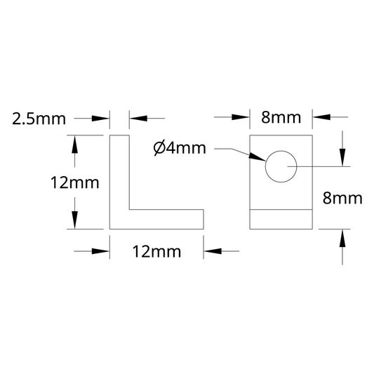 1103 Series L-Beam (1 Hole, 8mm Length) - 2 Pack