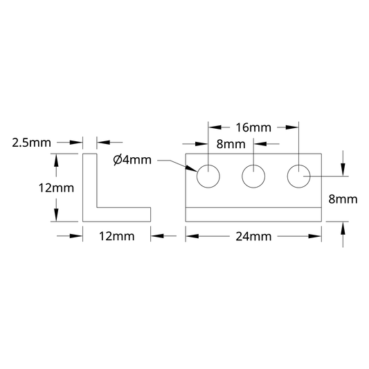 1103 Series L-Beam (3 Hole, 24mm Length) - 2 Pack