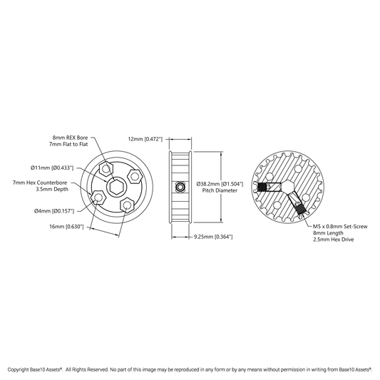 3417 Series 5mm HTD Pitch Set-Screw Pinion Timing Belt Pulley (8mm REX™ Bore, 16 Tooth)