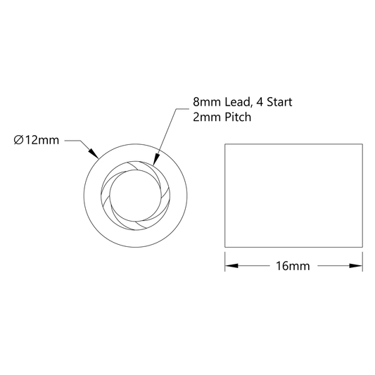 3500 Series Lead Screw Barrel Nut (8mm Lead, 4 Start, 12mm OD, 16mm Length)