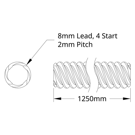 3501 Series Lead Screw (8mm Lead, 4 Start, 1250mm Length)