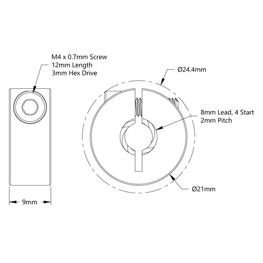3504 Series Lead Screw Clamping Collar (8mm Lead, 4 Start, 21mm OD, 9mm Length)