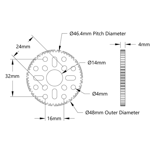 56 Tooth Hub-Mount Gear (MOD 0.8, 4mm Thick Acetal)