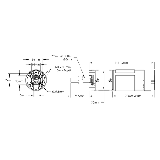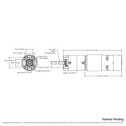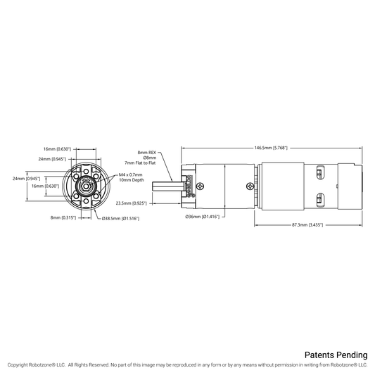 5303 Series Saturn Planetary Gear Motor (71.2:1 Ratio, 24mm Length 8mm REX™ Shaft, 260 RPM, 3.3 - 5V Encoder)